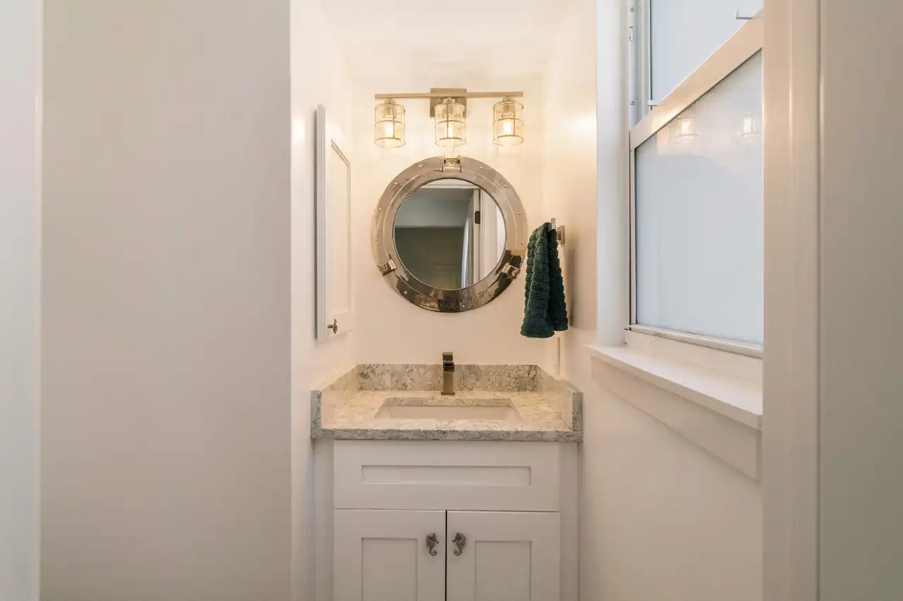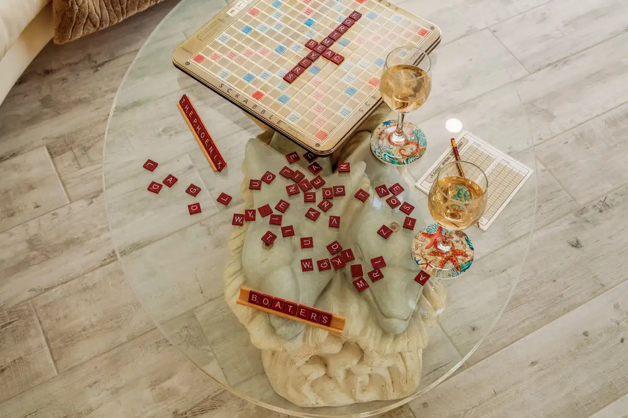 • Bright coastal décor with vintage-inspired touches for a fun, beachy vibe.
