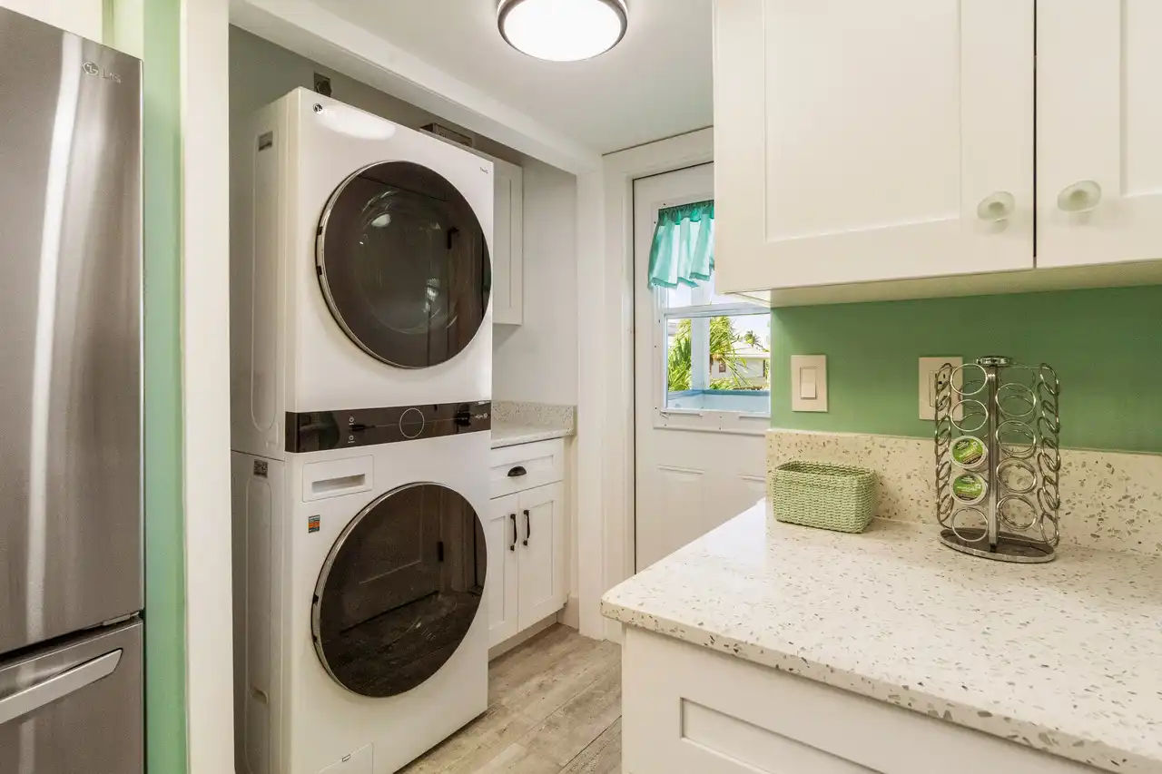 • Laundry: In-home washer and dryer located on the first floor and available for guest use. We provide laundry detergent, bleach, dryer sheets, and basic toiletries for your stay.