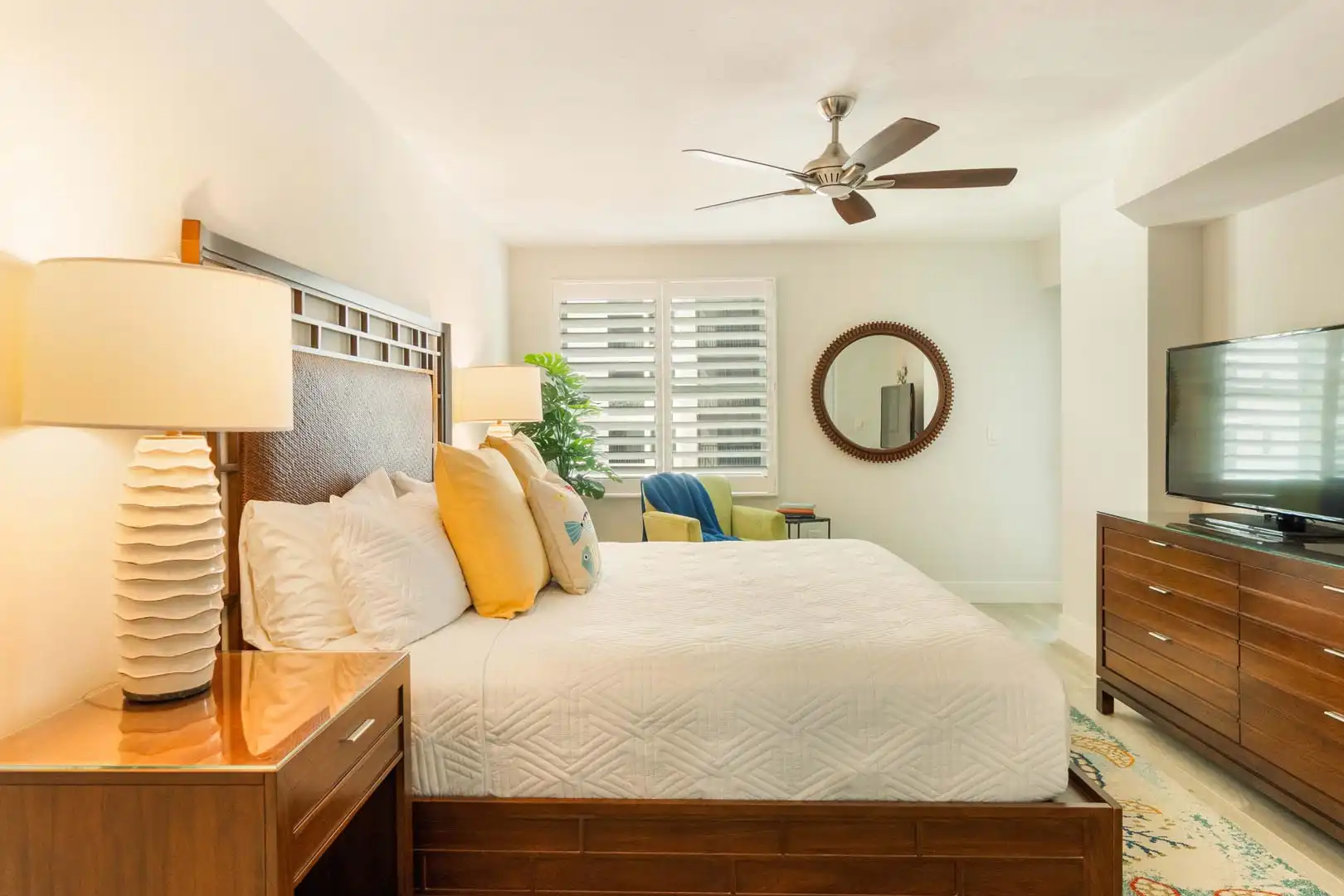 Entertainment: Smart TVs in living areas and cable TV in bedrooms.