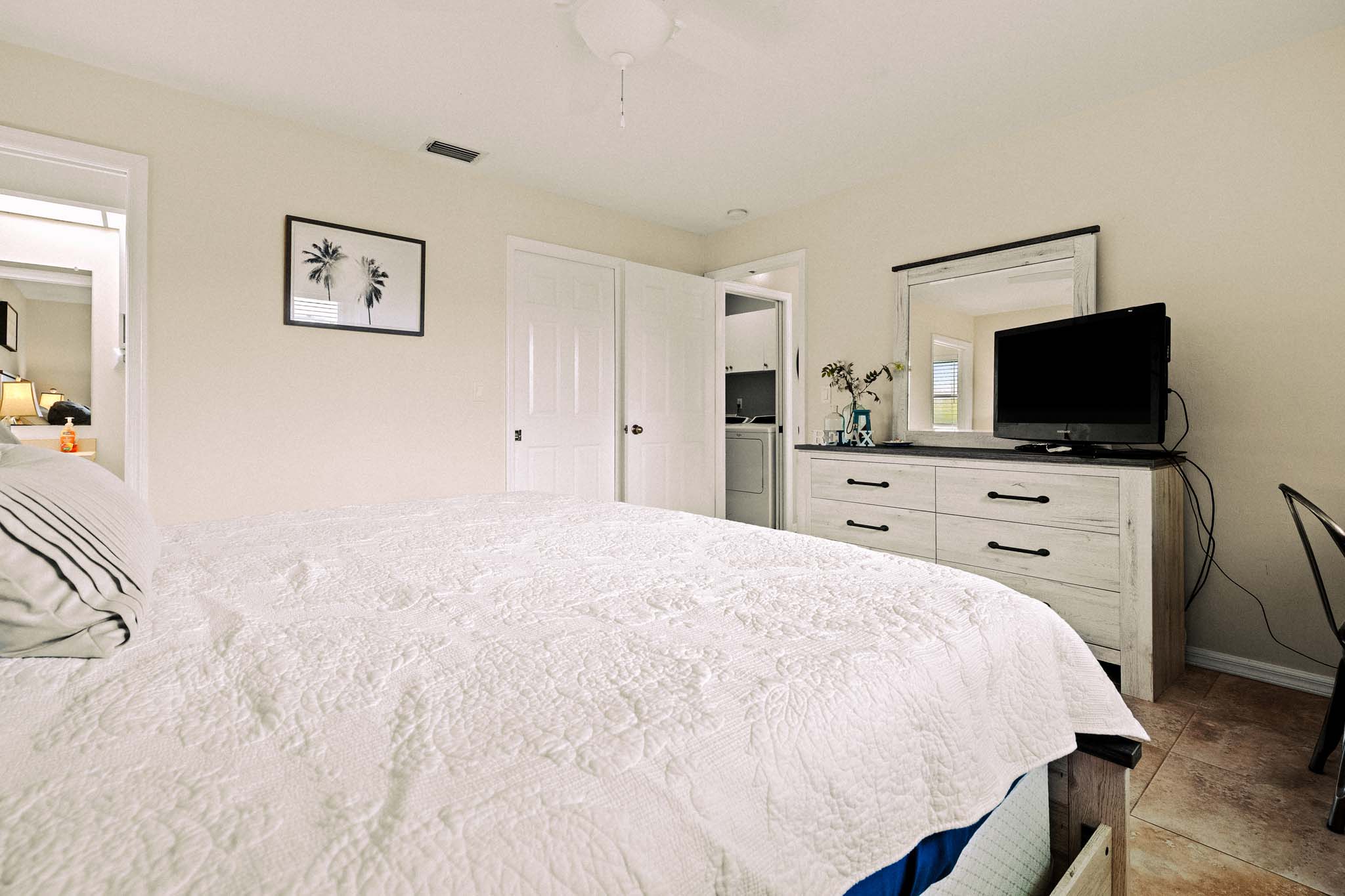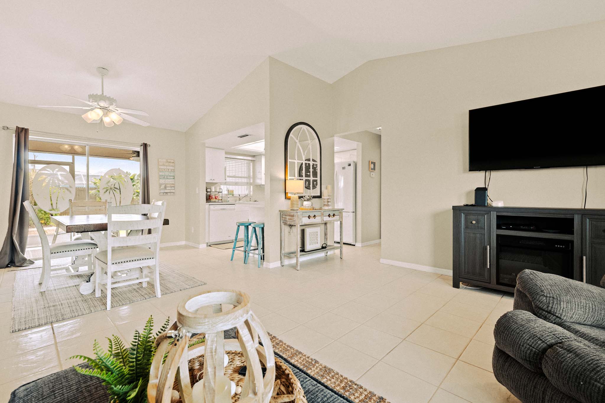Villa Jean is conveniently located in central Cape Coral close to shopping and dining and just a short drive to Cape Harbor, Tarpon Point, downtown Cape Coral, Matlacha & Pine Island, and Fort Myers. Villa Jean features a modern beachy vibe throughout and can accommodate up to 7 guests with ample space for families or groups traveling together.